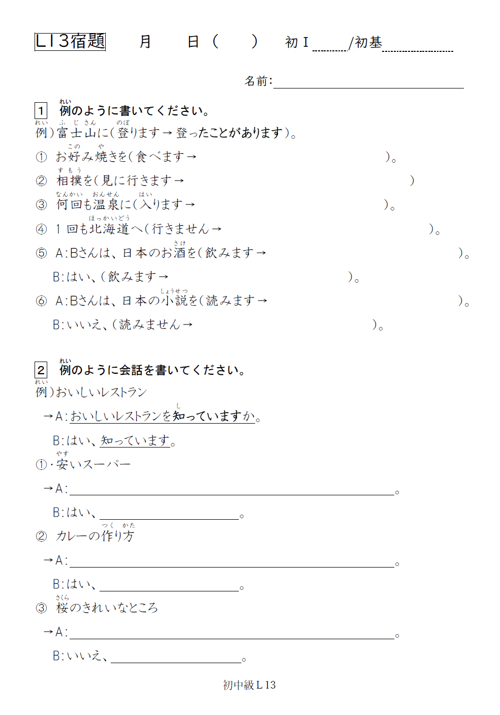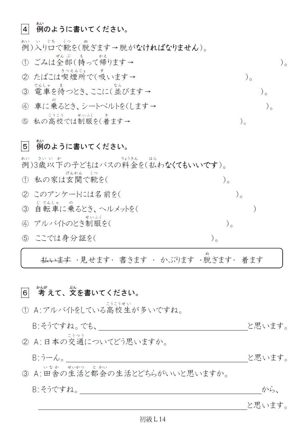 ④ ことばノート初級(赤)L11・L12・L13・L14