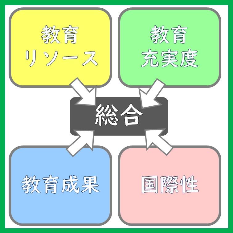 以【教育资源】【教育充实度】【教育成果】【国际性】这四方面为评价指标。
