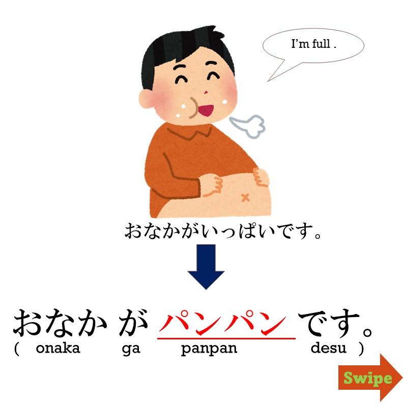 →「お腹(なか)がパンパンです。」