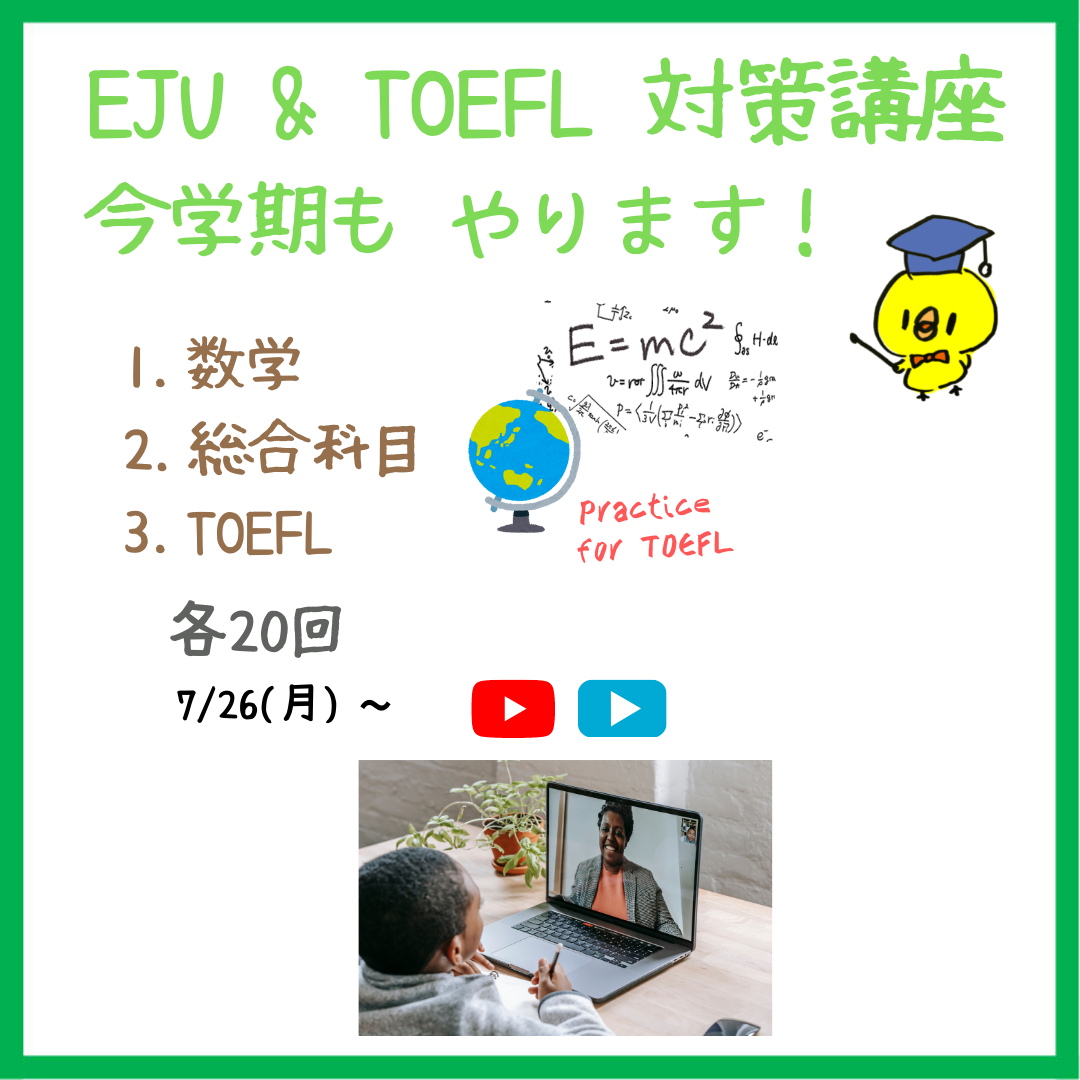 EJU数学、EJU総合科目、TOEFL、各20次,