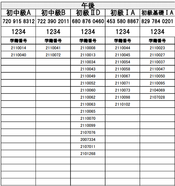 午後クラス(12:10~15:30)
