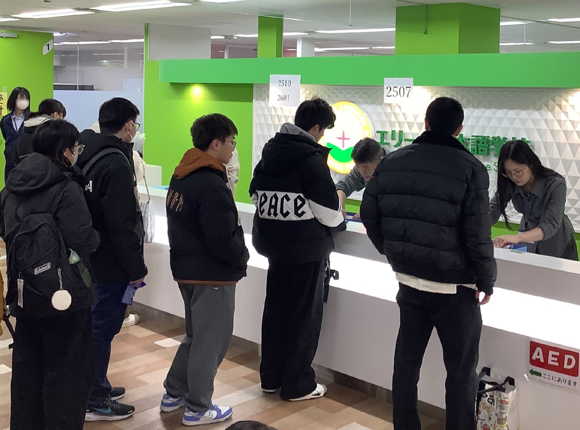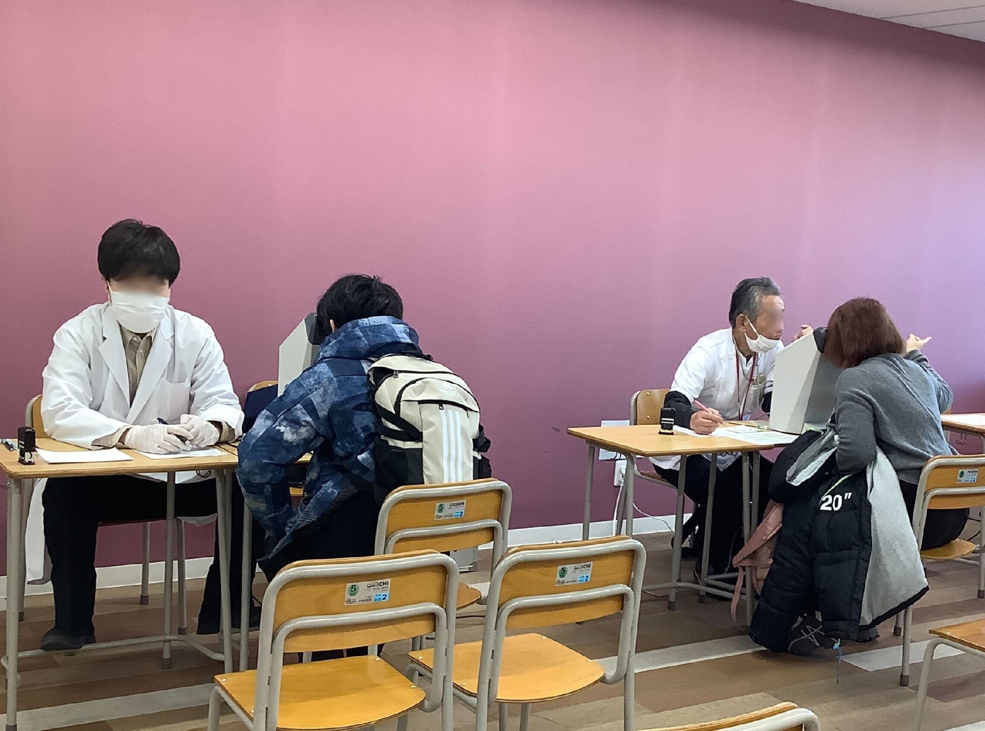 学生们提前了解了尿检方法和填写健康问卷的流程,并在检查当天用日语与负责人沟通。